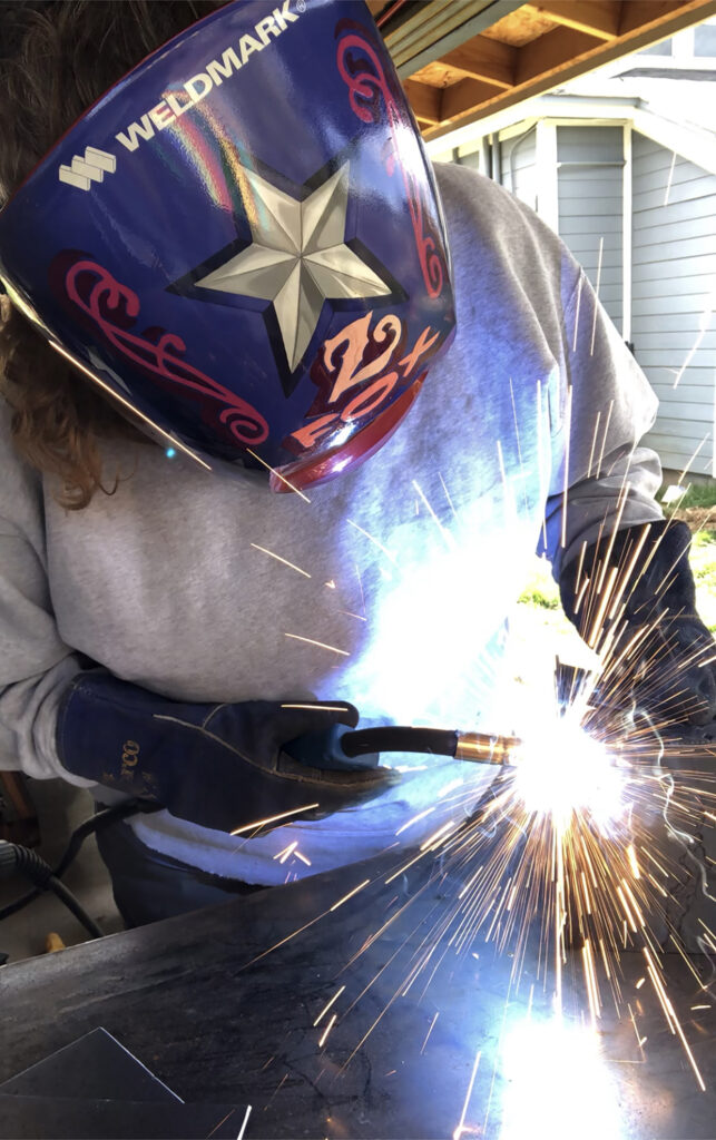 I have always considered myself fairly strong. I was a competitive swimmer as a child and have maintained swimming throughout my life. Strength, however, changes as you age. Now in my mid-fifties, working with medium-sized steel sculptures tests my physical limits daily. After hours of grinding, sanding, or working with hand tools, my hands ache. Standing on concrete floors in work boots leaves my feet throbbing. My studio is outdoors, which means enduring Idaho’s hot summers and bitter winters. The environment takes its toll just as much as the labor itself.