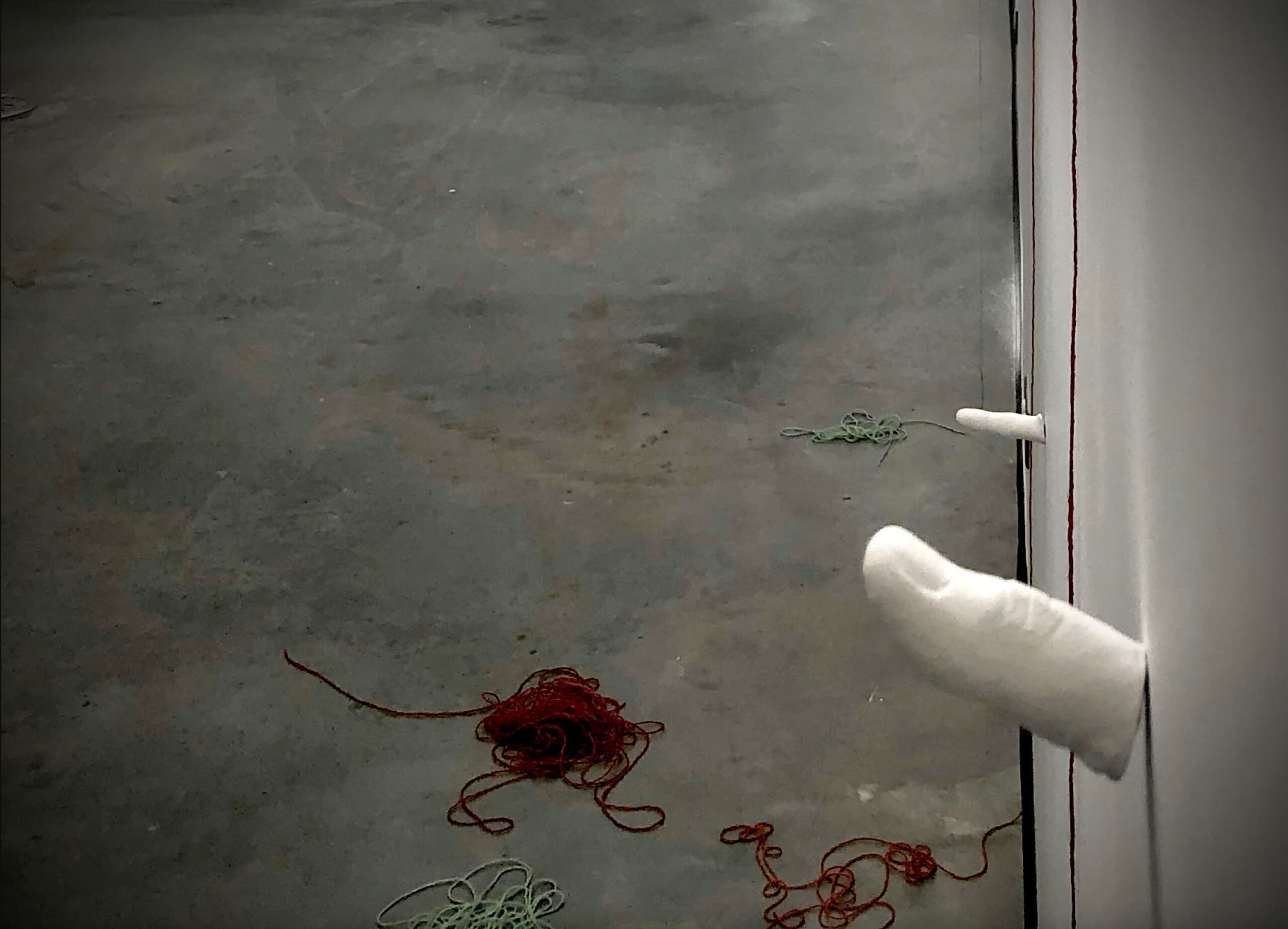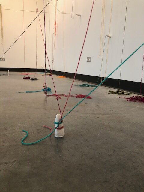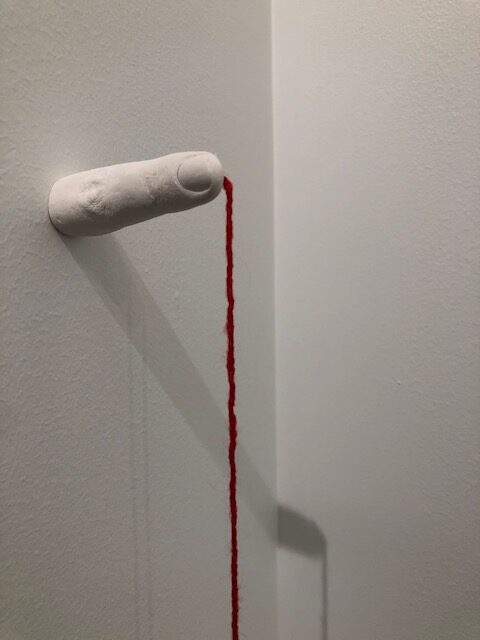 Created during the COVID-19 pandemic in the final year of my BFA, this installation centers on the idea of human connection. More than sixty plaster-cast fingers extend from the walls, windows, and floor of the space, each one holding a length of yarn. Participants were invited to actively engage with the work by either forming connections—tying strands of yarn together—or breaking them by cutting previously tied threads. As connections accumulated, the room became increasingly difficult to navigate. Movement through the space required cutting existing ties, altering both the physical and visual topography of the installation. Through this participatory process, the work emphasizes the importance of creating connections with others while also acknowledging that, at times, breaking connections is necessary in order to continue moving forward.